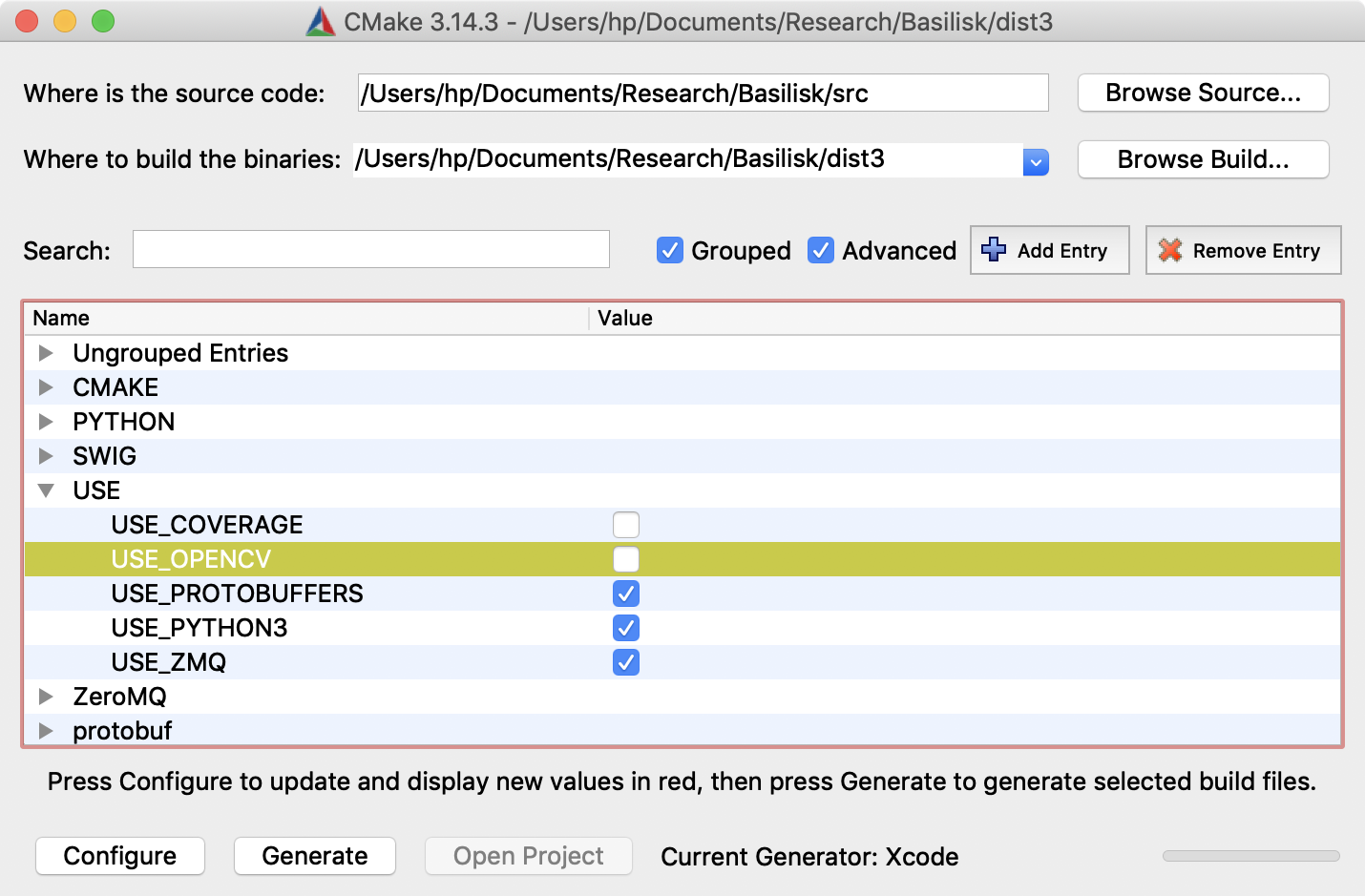 • Press Generate in Cmake to build the Xcode Basilisk project file inside the dist3 directory