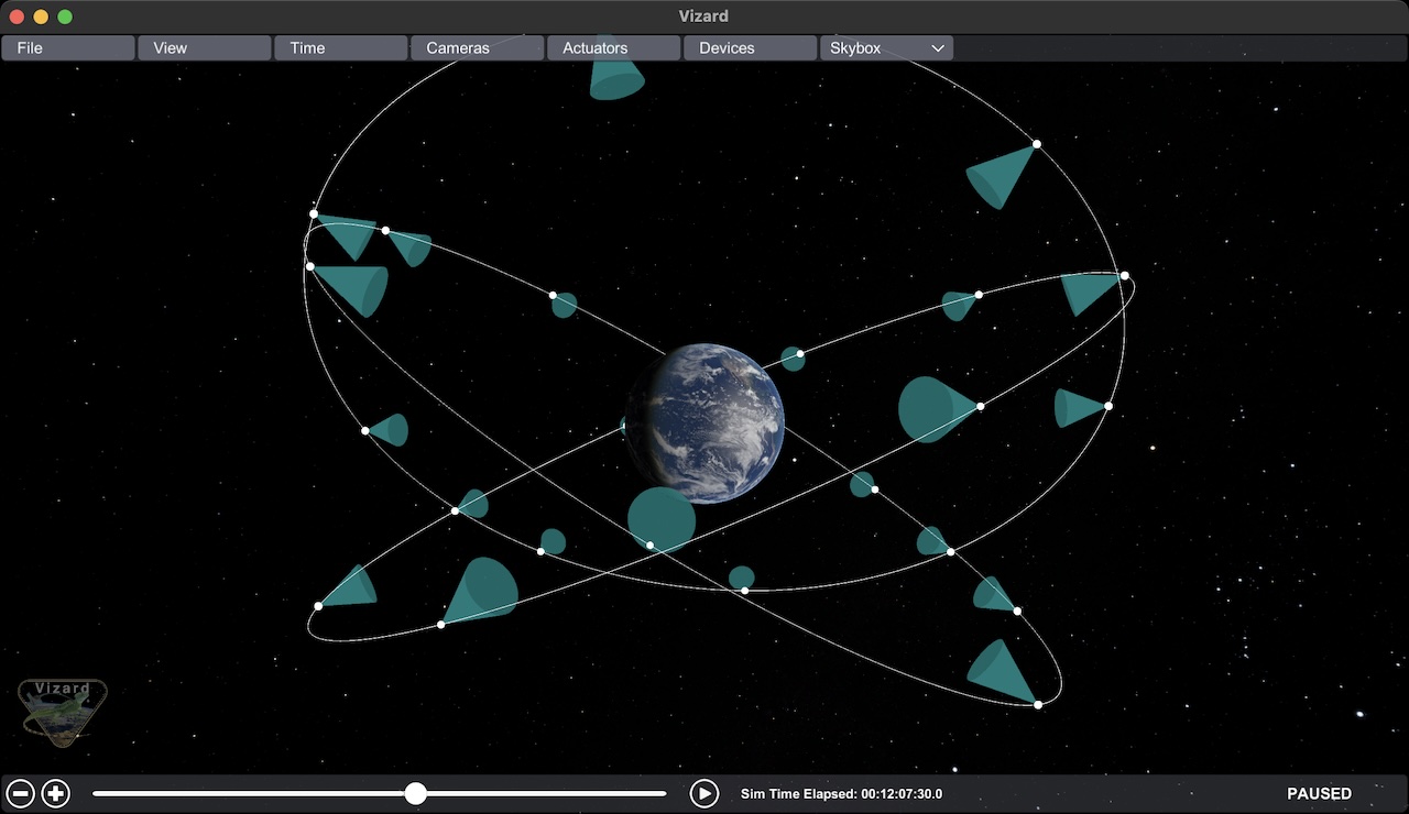 This scenario demonstrates how to set up a Walker-Delta constellation of satellites. Note that this scenario